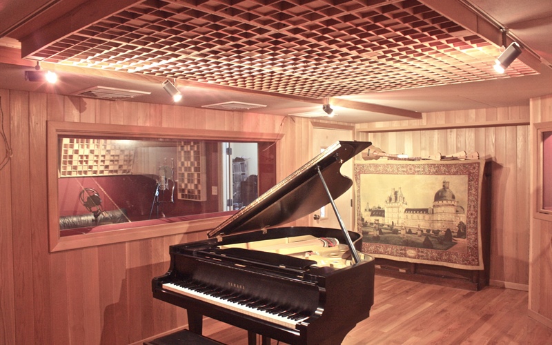 Similarly to the control room, the ERX live room has also been acoustically tuned by the Walters Storyk design group. Here you will find bass traps by RPG as well as 3 multi surface acoustical wall panels that can vary the acoustical signature of the room. Featuring non parallel walls, unfinished clear cedar, a ceiling of 3 way diffusers and lots of studio glass, this room feels warm and natural and reflects sound in a very pleasing way.